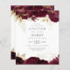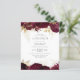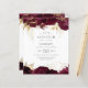 An elegant botanical design featuring burgundy floral borders at the top and bottom, trimmed with gold faux foil and glitter leaves, framing the classic charcoal grey text on a white background. A matching floral design appears on the back of the card.