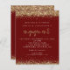 A value for money BUDGET alternative on a smaller size 4.5 x 5.6” semi-gloss 110lbs weight, which is of similar thickness to a postcard (however is not suitable to use as a postcard.). PLEASE NOTE there is ONE invite per sheet Burgundy Gold Glitter Engagement Invitation. Elegant gold faux glitter confetti borders are at the top and bottom and also on the back on a burgundy background. Engagement is set in a modern handwriting style. Easily personalise the rest of the text to your own.