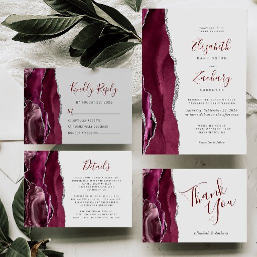 Burgundy Silver Agate Pale Gray Wedding SuiteDesigned by Akhates Designs