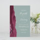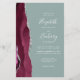 The left-hand edge of this elegant modern wedding invitation features a burgundy watercolor agate border trimmed with silver faux glitter. The customizable text combines white handwriting, copperplate and italic fonts on a sage green background. Add additional details on the back, along with a QR code to help your guests visit your wedding website.