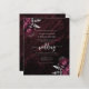 This elegant wedding invitation features burgundy floral bouquets set off with silver faux foil greenery in two corners, on a background image of burgundy watercolor agate. The customizable silver grey text combines serif, italic and handwriting fonts. The reverse side provides space for wedding details, along with a QR code guests can scan to visit your website and RSVP.