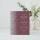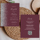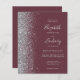 The left-hand edge of this elegant modern wedding invitation features a silver faux glitter border. The customizable text combines pale silver grey handwriting, copperplate and italic fonts on a dark burgundy background. Add additional details on the back, along with a QR code to help your guests visit your wedding website.