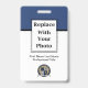 Use these simple budget employee ID badges and replace with logo template with your own company graphic or logo to extend your business branding. Available in bulk or small quantities to suit your needs and includes a barcode you can replace on the back with your own barcode bar.