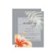 Affordable Rustic Tropical Watercolor Hibiscus and Foliage Wedding Invitation | NEW! Affordable Lightweight Wedding Invitations - a single bright coral and yellow tropical hibiscus flower and one split leaf philodendron leaf adorn opposite diagonal corners both, edged in sparkling gold all set on a medium grey background with a sheer white overlay for the text to be easily read and yet allow the design to show through - beautiful handwritten calligraphy - easy to customize template - original design by ©WhimsicalArtwork™ for theBarefootBride ™. This is part of our Watercolor Tropical Hibiscus wedding collection as well as Baby Shower, Birthday and Christening Invitations. For question or assistance please contact designer indy.designer@yahoo.com.