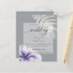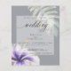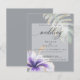 Affordable Rustic Tropical Watercolor Hibiscus and Foliage Wedding Invitation | NEW! Affordable Lightweight Wedding Invitations - a lilac purple tropical hibiscus flower and one fern leaf adorn and one split leaf philodendron leaf adorn opposite diagonal corners both, edged in sparkling gold all set on a medium grey background with a sheer white overlay for the text to be easily read and yet allow the design to show through - beautiful handwritten calligraphy - easy to customize template - original design by ©WhimsicalArtwork™ for theBarefootBride ™. This is part of our Watercolor Tropical Hibiscus wedding collection as well as Baby Shower, Birthday and Christening Invitations. For question or assistance please contact designer indy.designer@yahoo.com.