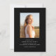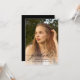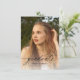 This graduation announcement features a large, full front photo with calligraphy script overlay and a second photo on the back along with your graduation party invitation. The back elements can be removed by clicking the button to edit further.
