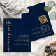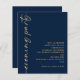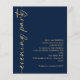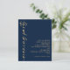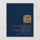 Budget Calligraphy QR Code Navy Blue and Gold Wedding Evening Party Guests. A budget priced smaller 4.5 x 5.6” alternative on 110gsm semi gloss similar in thickness to a postcard. Add your QR code to your wedding website on the back makes this a convenient option for your guests to RSVP and see all the details without the need for separate RSVP and details cards. Stylish set script is rotated to the left hand side, with all the details stylishly to the right with lots of white space for a contemporary feel. Easily personalise with your details. And change the colour of text and background if you wish via the edit further option.
