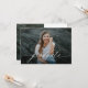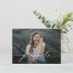 This budget graduation announcement features a large, full front photo with calligraphy script overlay and a second photo on the back along with your graduation party invitation. The back elements can be removed by clicking the button to edit further.