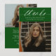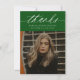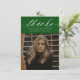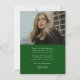 Budget Calligraphy Two Photo Green Graduation Thank You Card features minimal typography and one photo on the front, along with a second photo on the back and optional details.