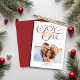 Budget Modern Cardinal Red Joyful Christmas Holiday Photo Cards with a trendy typography and on stylish winter cranberry red. **Our BUDGET paper is smaller and more delicate, but still beautiful!** For a comparison of paper types, please watch our video here: https://youtu.be/G0F9Am5HPD4 If you need assistance or matching items, please contact us at cedarandstring@gmail.com.