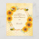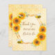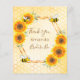 Une carte de remerciements pour une Fête des mariées d'été. Des tournesols rustiques jaunes et oranges, colorés par l'eau, sont disposés sur un motif en nid d'abeille. Avec un cadre géométrique en faux or. Avec le texte : Merci et Epouse à Bee écrit avec un script de style manuscrit moderne. Personnalisez et ajoutez le nom de la mariée. Lettres Brown. Retour : Votre mot de remerciement et votre nom.