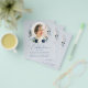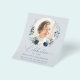 This is an elegant and modern funeral invitation card printed on a budget friendly flyer to celebrate the life of your loved one. The design features a beautiful calligraphy font and delicate floral wreath with blue, green and silvery botanicals that frame a photo. This invitation can easily be personalized with your own photo and text to create a special tribute for your loved one's funeral, memorial or celebration of life using the template provided.