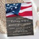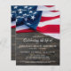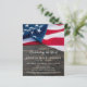 USA American Flag Memorial Funeral Celebration Of Life Invitation. Cette célébration patriotique de l'invitation à la vie présente un drapeau des Etats-Unis d'Amérique sur un arrière - plan en bois foncé. Personnalisez cette fête du drapeau américain de l'invitation de la vie avec vos proches nom & dates, lieu de l'événement, et toute information supplémentaire sur le dos. Cette invitation funéraire du drapeau américain sera un souvenir précieux. Parfait pour les funérailles militaires, le service commémoratif vétéran ou la célébration militaire de la vie. In Loving Memory Military Memorial drapeau américain. DROIT D'AUTEUR © 2020 Judy Burrows, Black Dog Art - Tous droits réservés. Célébration Budgétaire De La Vie Le Drapeau Patriotique Américain Invit