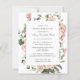 Budget Invitation Style. Elegant celebration of a life invitation features a dusty pink rose floral frame . The deceased person's name is written in a traditional script text. All of the text can be easily edited to create a personal remembrance.