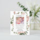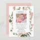 Budget Invitation Style. Elegant celebration of a life invitation features a dusty pink rose floral frame. A picture of your loved one is in the centre. Their name is written in a traditional script text. All of the text can be easily edited to create a personal remembrance.