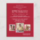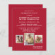 Elegant red and white design features white text on a red background. Three of your favourite photographs can be placed at the bottom. Bold white text makes it easy to read the details. All of the text can be easily edited to create a personal remembrance.
