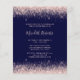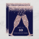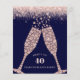 Budget Luxe Blush Glitter on Navy Champagne Toast 40th Birthday Party Invitation... On an elegant navy blue background with blush pink glitter borders, diamond champagne glasses toast a friend or family member's 40th Birthday with the words "Here's to 40 years on planet Earth." The back of the invitation -- also with feminine blush pink glitter -- displays all of the party details -- honoree's name, date, time and place of the party, plus RSVP information. A glamourous start for a 40th birthday. All text on front and back of this affordable invitation can be easily revised on the personalization template.