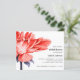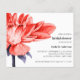 Stunning and Elegant Bridal shower invitation, featuring a magnificent Dahlia Flower in bloom in watercolor palette of rich orange red nuances and blue purple leaves on left of the card.