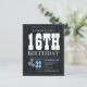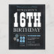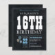 Rustic Vintage Chalkboard White Blue Balloon 16th Birthday Party Invitation