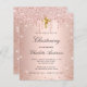 Budget christening blush rose glitter invitation