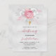 Budget Christening silver pink floral invitation