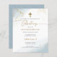Budget Christian Blue Gold Cross Boy Christening Invitation