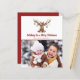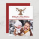 Cute, Budget Rustic Christmas Deer Ornaments Holiday Photo Card with an adorable deer festooned with ornaments and rustic holiday flowers and pine branches on a white background. The back of the card is a rustic winter red. Easily add your own photo and details for a darling Christmas card! **Our BUDGET paper is smaller, lighter, and more delicate, but still beautiful! Don't forget the envelopes!** If you need assistance or matching items, please contact us at cedarandstring@gmail.com.