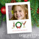 Modern traditional Christmas charming winter holiday family photo BUDGET affordable PAPER FLYER featuring JOY floral script lettering with red holly berries, fir branches wreath, and a coral red bow. ++++++++++ Personalize this with your picture (horizontal oriented) and text! ++++++++++++++++ PLEASE READ THIS BEFORE PURCHASING! This is a budget affordable card printed on a FLYER. ++++ Please note that BUDGET PAPER IS THIN - You can upgrade to have this card printed on cardstock ++++ ENVELOPES NOT INCLUDED. +++ Double-check all the information and spelling of your text because you will receive exactly what you see - no one else will check anything before printing. ++++ This card is designed for size 4.5" x 5.6". In the case you choose another size of the card and text goes outside page, everything needs to be fixed before adding the product to cart. Please ask Live Design Service for help.