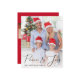Budget-friendly three photo Christmas greeting with "Peace & Joy" in an elegant script overlaying your picture on the front. On the back, add two more photos and a personalized greeting.
