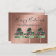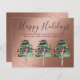 Attractive modern Christmas or other holidays card with typography, forest Pine trees and rose gold metallic look background. Text template fields both sides ensure you can write your annual catch up letter for your friends and family. Envelopes not included.