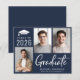 Modern dark blue budget-friendly Class of 2025 graduation announcement featuring 3 photos and "Graduate" in a contemporary bold white script. Add the grad's name and school or university in simple white typography.