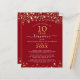 A budget-friendly modern and elegant class reunion invitation (sample shows 10 year) for any year printed on 4.5x5.6-inch lightweight paper instead of cardstock featuring gold stars and lights, elegant handwritten script typography and a custom colour background (shown in red) you can change to your school colour or party theme colour. All text is editable to make your own. Ideal for conservative budgets and/or hand-delivering to guests. ASSISTANCE: For help with design modification or personalization, colour change, resizing, transferring the design to another product or you would like coordinating items, contact the designer BEFORE ORDERING via the Zazzle Chat MESSAGE tab below or email makeitaboutyoustore@gmail.com.