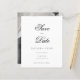 Announce your special day in timeless style with this elegant black and white photo Save the Date card. Featuring a romantic monochrome engagement portrait paired with sophisticated script typography, this design blends classic charm with modern minimalism. The graceful calligraphy font and clean layout create a refined, luxury feel—perfect for formal, traditional, or contemporary weddings.