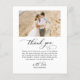 Budget, Classic, Modern, Elegant Script 4 Photo Collage Affordable Wedding Thank You Flyer in Black and White. Stylish, minimalist wedding card template featuring five (4) grid photo collage on the front and one (1) photo on the reverse side. "Thank you" text in a cursive hand lettered typography or calligraphy font script with swash tail. Little love heart motif between the names. Personalize with your name and thank you message. If You need help or matching item, please contact to designer!
