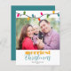 BUDGET Modern Colourful Christmas Lights Holiday Photo Cards featuring "Merriest Christmas" and a festive string of bulbs in trendy colours like teal, magenta (hot pink), gold (yellow), and green! Perfectly cute for your fun holiday cards! **Our BUDGET paper is smaller and more delicate, but still beautiful!** For a comparison of paper types, please watch our video here: https://youtu.be/G0F9Am5HPD4 If you need assistance or matching items, please contact us at cedarandstring@gmail.com.