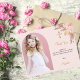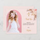 A modern and elegant confirmation thank you card. A blush background decorated with blush florals and pampas grass. Personalize and add your photo of the child inside the arch frame, thank you note and name.
