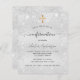 A modern, elegant and minimalist confirmation invitation for both boys or girls. Faux silver metallic looking background decorated with faux glitter dust. Personalize and add a name and details. Black coloured letters.