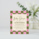 Budget Cute Retro Boho Chequerboard Flower Green Pink Baby Shower Invitation