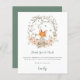 A budget price SMALLER 4.5” x 5.6” alternative. Available in a SEMI-GLOSS 110 lb CARD STOCK which is the default option (thicker for invitations), OR a SATIN FINISH 80 lb THINNER PAPER STOCK (ideal for enclosures). Envelopes are an optional extra and are slightly larger than the card size. Say thank you after your baby shower with woodland cute with this sweet boy fox within a vintage greenery and floral frame. Easily personalise with your own words of thanks and name. A coordinating sage green background is on the back. You can change the fonts and text and background colours if you wish via the Click to Customize Further option.