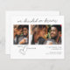 A value for money BUDGET alternative on a smaller size 4.5 x 5.6” semi-gloss 110lbs weight, which is of similar thickness to a postcard (however is not suitable to use as a postcard.). PLEASE NOTE there is ONE invite per sheet. Budget Decided on Forever 2 photos Save the Date. Stylish informal set script for We decided On Forever is at the top. The word "and" in between your names is in a decorative set script. The rest of the text can be easily personalised. Easily upload your favourite photos of you both to replace the samples in the template holder. For minimal contemporary style a white background is also on the back but his can be changed to another colour if you wish via the customise further option, as can the colour of the text.