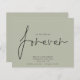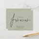 Budget Decided On Forever Pale Sage Save The Date. A budget price SMALLER 4.5” x 5.6” alternative. Available in a SEMI-GLOSS 110 lb CARD STOCK which is the default option (thicker for invitations), OR a SATIN FINISH 80 lb THINNER PAPER STOCK (ideal for enclosures). Envelopes are an optional extra and are slightly larger than the card size. A simple design on a background of sage green to invite your guests to save your date. We Decided on Forever which is in a stylish set script is in the centre.The rest of the text you can easily personalise. Text and background colours can be changed if you wish to better suit your wedding theme via the customise further option.