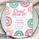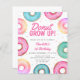 This Budget Doughnut 1st Birthday Invitation is decorated with watercolor doughnuts in shades of pink and aqua. It says "Doughnut Grow Up" in stylish typography.