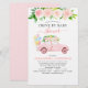 Budget Drive by Baby Shower Watercolor for a Spring Wedding Baby Girl or Boy Shower Invitations on white background - includes beautiful and elegant script typography with modern botanical Flowers, Car, Balloons, leaves and greenery for the special Mother to Be celebration.