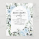 Budget Dusty Blue Floral Roses and Eucalyptus Botanical Greenery Watercolor Spring or Summer Any Age Birthday Party Invitations - includes beautiful and elegant script typography with modern botanical flowers and greenery for the special 13th, 15th, 16th, 18th, 21st, 30th, 40th, 50th, 60th, 70th, 80th, 90th or 100th Birthday Party.