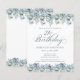 Dusty blue flowers create top and bottom borders on this elegant birthday invitation. Classic script calligraphy adds a beautiful touch. This item is party of the Dusty Blue floral collection.
