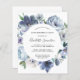 Dusty blue peonies form a round frame around your birthday party details on this elegant budget invitation.