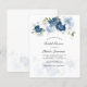 Customize this bridal shower budget invitation card by clicking the "Personalize" button above. The card features a modern elegant chic dusty blue flowers with white, light blue, and olive green bloom.