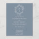 Budget Elegant Dusty Blue Floral Crest Monogram Wedding Invitation