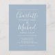 Featuring signature style names, this elegant budget dusty blue wedding invitation can be personalized with your information in chic lettering. Designed by Thisisnotme©