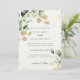 This beautiful wedding invitation features a sophisticated blend of earthy greens and soft gold accents, perfect for a nature-inspired celebration. The delicate watercolor leaves provide an elegant touch, while the clean, modern fonts enhance its timeless appeal. The invitation's design captures the essence of a serene garden, making it an ideal choice for couples seeking a refined and natural theme for their wedding day.